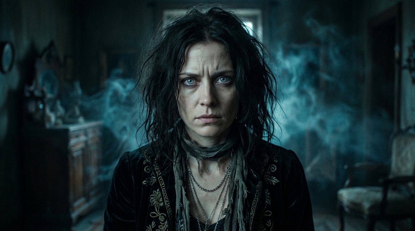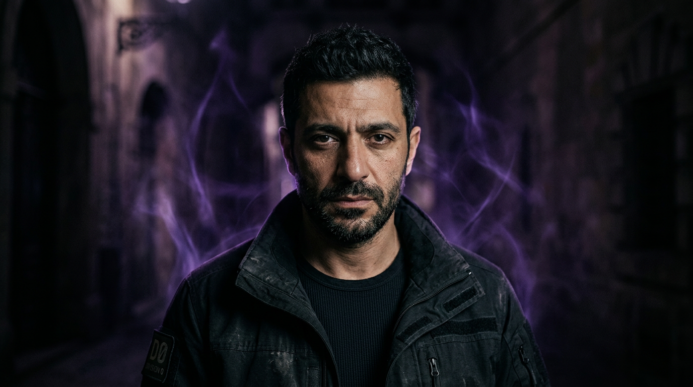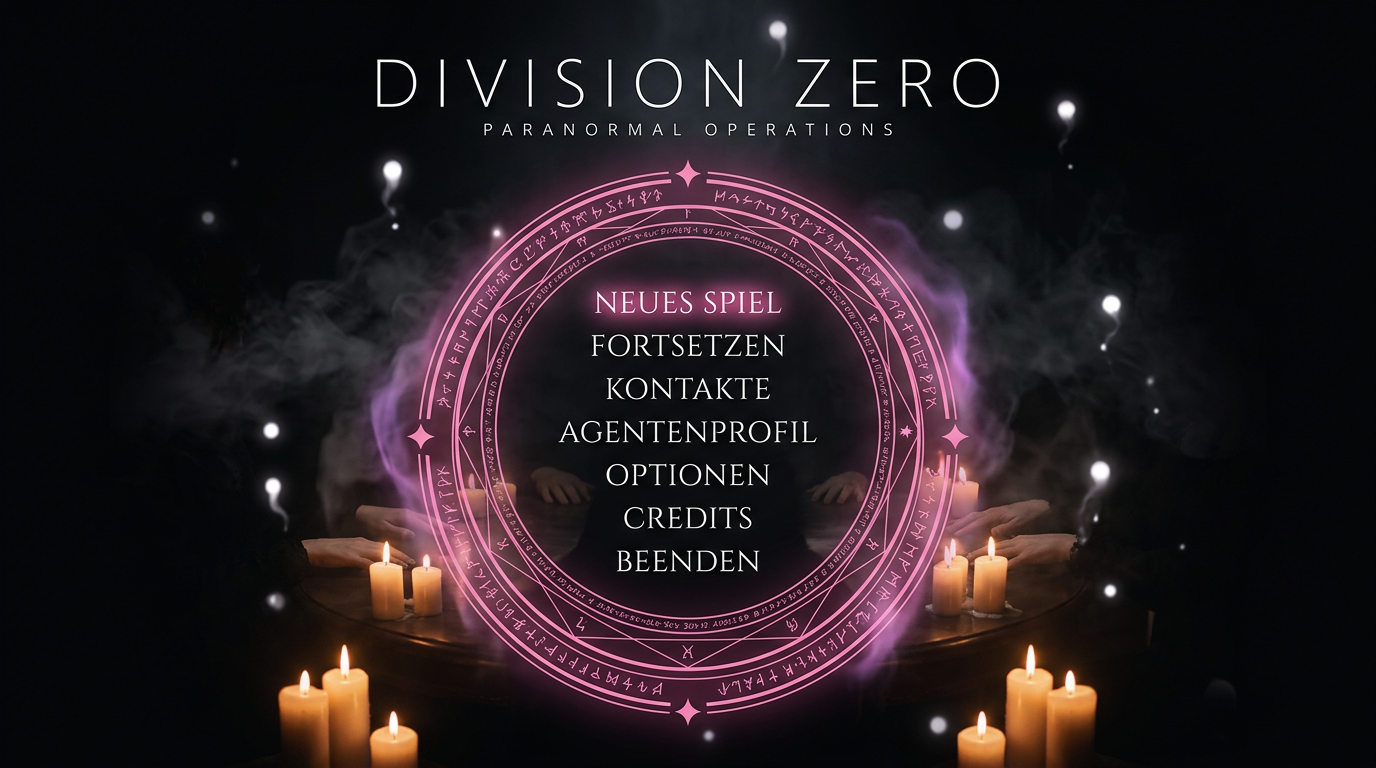 Konzept G: Spirituelles Interface mit Ritualsigil, Kerzenlicht und okkulter Typografie.