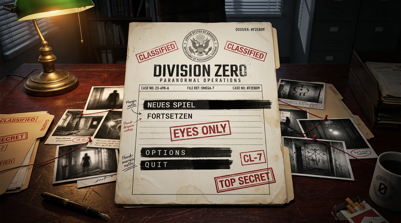 Konzept H: Geheimakten-Ästhetik mit CLASSIFIED-Stempeln und geschwärzten Passagen.